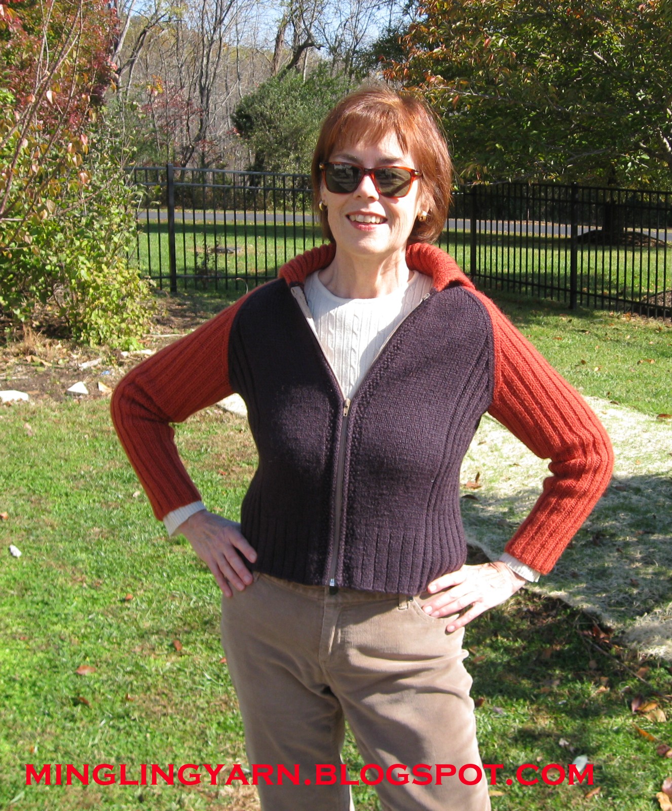 Everybody needs an autumn 'knock-about' cardigan, right? I choose to knit a classic from Chic Knits -- Ribby Cardi. Knit in a worsted weight yarn from Elann -- Peruvian Highland. The knitting went fine, as expected. Bonne Marie Burns crafts excellent patterns, and this oldie but goodie from her line is no exception. My problems arose with my blocking of the finished product. I sent the sweater through the hand wash cycle of my front-loading washing machine -- cold water, no agitation, no other item in the load to provide any additional friction. And, in my defense, this is how I have laundered many other hand knit, and also store bought, knitwear in the several years I have had the machine. This time, not so good. Apparently Peruvian Highland yarn felts with great ease. Very nice if that's what you want -- sadly, I did not.